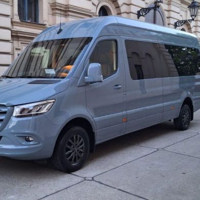 Zarezerwuj przejazd Mercedesem Sprinter VIP 8-osobowym i zapewnij swojej grupie podróż w luksusowych warunkach, z pełną wygodą i prestiżem.