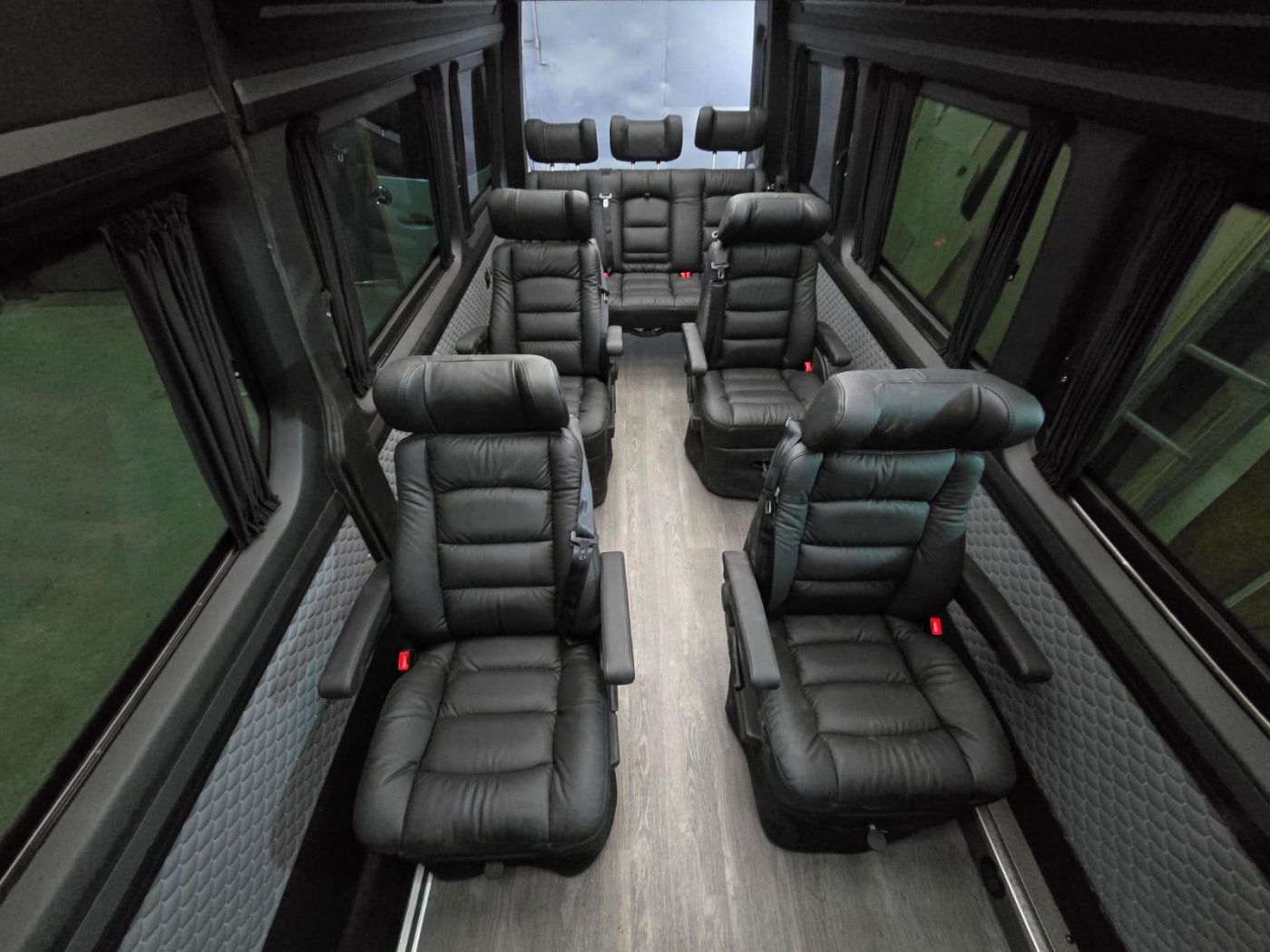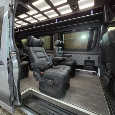 Ekskluzywne wnętrze zostało wyposażone w komfortowe indywidualne fotele, klimatyzację strefową, nastrojowe oświetlenie LED oraz nowoczesne systemy multimedialne. Mercedes Sprinter VIP 8-osobowy sprawia, że podróżowanie w większej grupie staje się równie komfortowe jak w limuzynie.